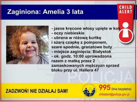 Porwana przez ojca 3-letnia Amelka i jej mama odnalezione - całe i zdrowe. Jednak wbrew wcześniejszym doniesieniom nie w Środzie Wielkopolskiej