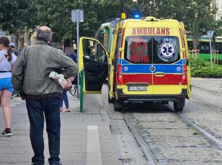 Pasażerka zasłabła w tramwaju, wezwano karetkę. Ruch przez chwilę został wstrzymany.