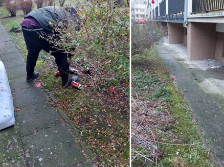 Os. Jagiellońskie: mężczyzna przebywał pod balkonem i zaśmiecał okolicę. "Ma gdzie mieszkać, ale nie chce tam być"