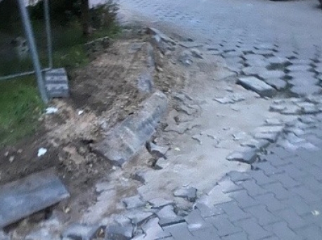 Budują mieszkania, ciężki sprzęt niszczy skwer i ulicę. "Za naprawę zapłaci deweloper czy podatnik?"