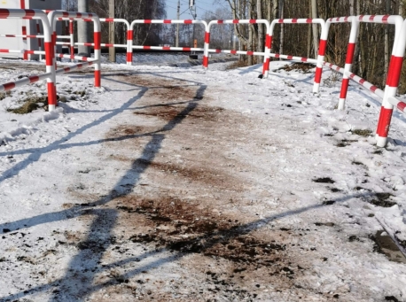 Zaspawane przejście przez tory na granicy Poznania i Suchego Lasu