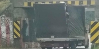 Utrudnienia na DK92. Samochód utknął pod wiaduktem