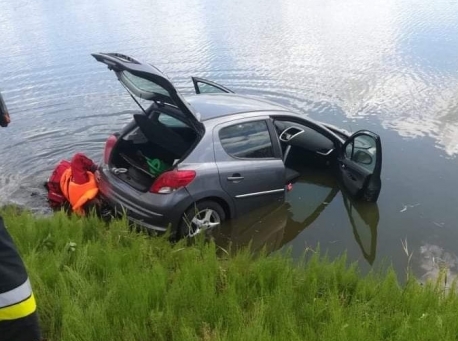 Auto wjechało do stawu. I wciąż pracował w nim silnik