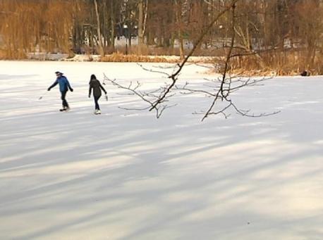 Ślizgają się na zamarzniętych stawach. "Ludzi na łyżwach tyle co na lodowisku Chwiałka"