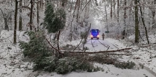 Kolejne połamane drzewa pod naporem śniegu. Wielkopolscy strażacy mieli ręce pełne roboty